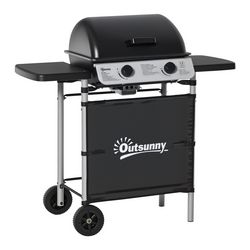 Le barbecue à gaz Outsunny, idéal pour rassemblements, offre repas savoureux. 2 brûleurs indépendants, tables d'extension pour rangement et préparation. Facile à déplacer avec deux roues. Parfait pour cuisine extérieure.Caractéristiques :- Le barbecue de jardin est équipé de 2 brûleurs pouvant être