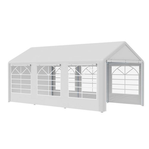 Barnum tonnelle tente de réception 3 x 6 m - 6 fenêtres, 2 portes - acier galvanisé PE blanc