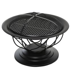 Brasero boule de feu cheminée foyer extérieur Ø 75 x 55H cm grille à charbon + cuisson couvercle tisonnier métal noir