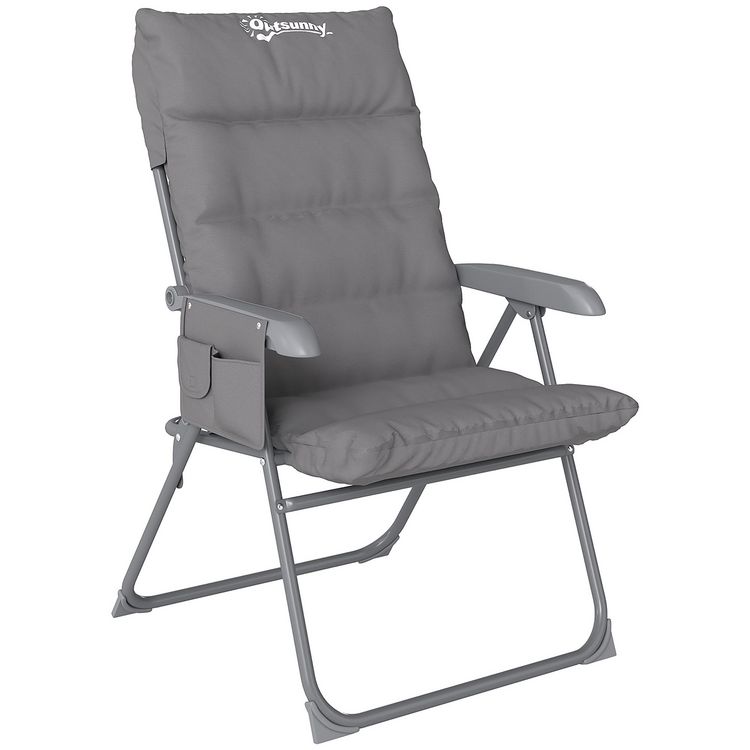 Chaise de camping pliante rembourrée inclinable grand confort gris