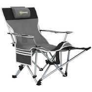 Chaise de camping pliante - repose-pied amovible, rangements - sac transport - gris