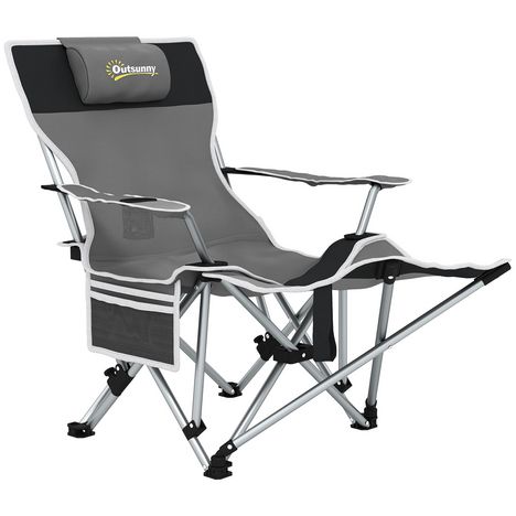 Découvrez la chaise de camping Outsunny avec repose-pieds amovible et appui-tête doux. Fabriquée en tissu Oxford 600D résistant, elle est durable et pratique avec un porte-gobelet et une poche latérale. Transport facile grâce au sac compact inclus.Caractéristiques :- Le repose-pieds amovible du faut