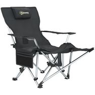 Chaise de camping pliante - repose-pied amovible, rangements - sac transport - noir
