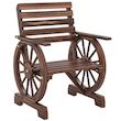 Chaise de jardin roue de chariot dossier incliné bois carbonisé