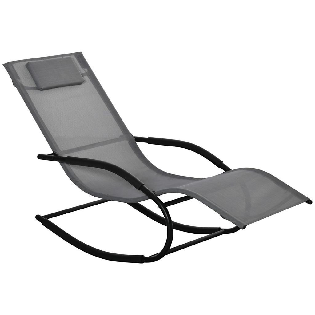 Chaise longue à bascule rocking chair design acier époxy noir textilène gris
