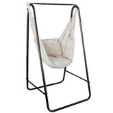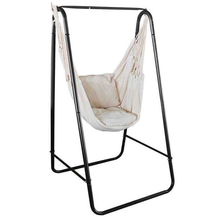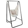 Chaise suspendue de jardin avec support et coussin acier noir coton beige