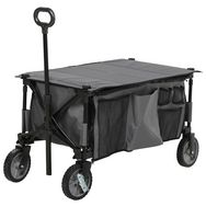 Chariot de jardin pliable 4 roues - bâche amovible, poignée télescopique réglable, 5 pochettes rangement - acier polyester gris