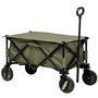 Chariot de jardin pliable 4 roues - bâche amovible, poignée télescopique réglable, 5 pochettes rangement - acier polyester kaki