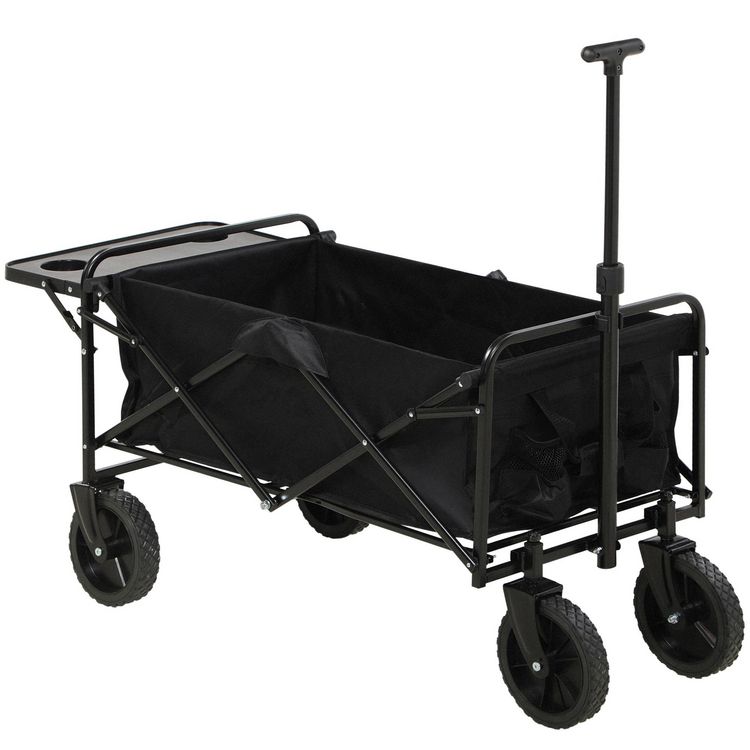 Chariot de jardin pliable 4 roues poignée télescopique réglable rangements noir