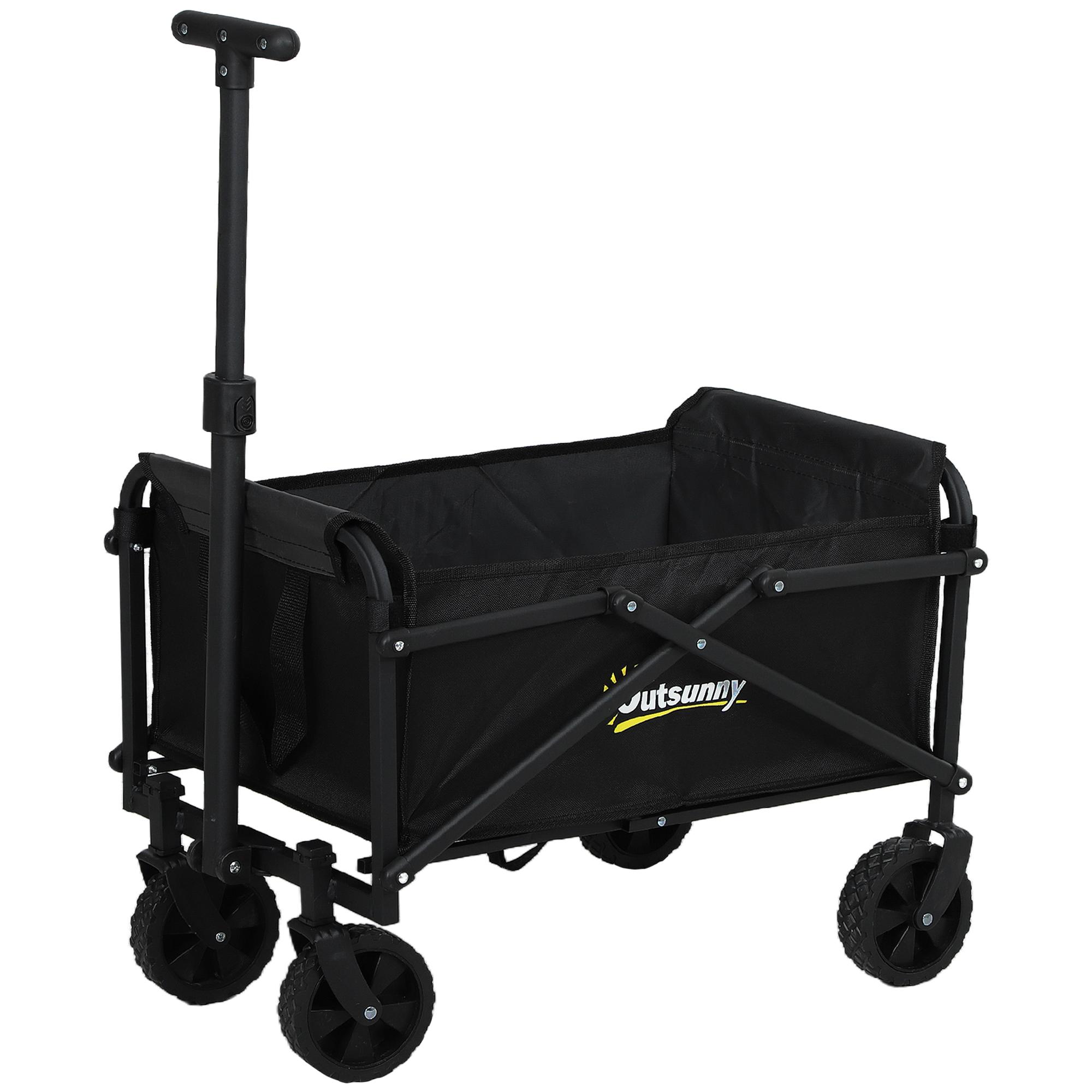 Chariot de jardin pliable 60 Kg max. poignée télescopique réglable métal oxford noir
