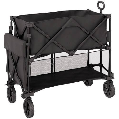 Chariot de jardin pliable multi-rangement max. 200 Kg - poignée teslescopique - roues tout terrain noir