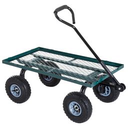 Chariot de transport jardin remorque à main charrette à bras 4 roues 98L x 45l x 85H cm charge max. 150 Kg métal vert
