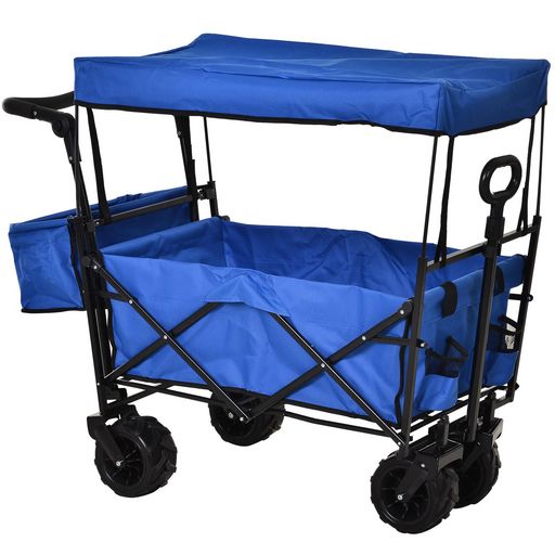 Chariot pliant avec toit, poignée, panier - chariot de plage - chariot de transport pliable tout-terrain métal noir oxford bleu