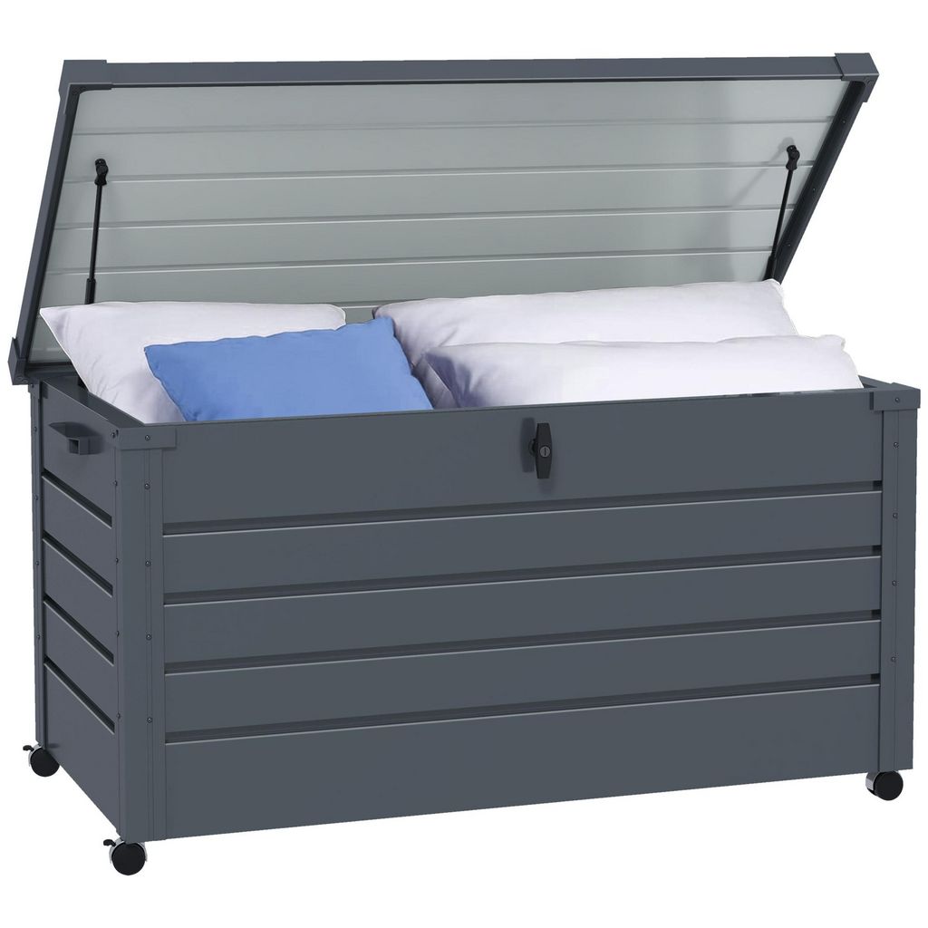 Coffre de jardin grande taille 311L verrouillable - roulettes, poignées, vérins gaz - acier anthracite