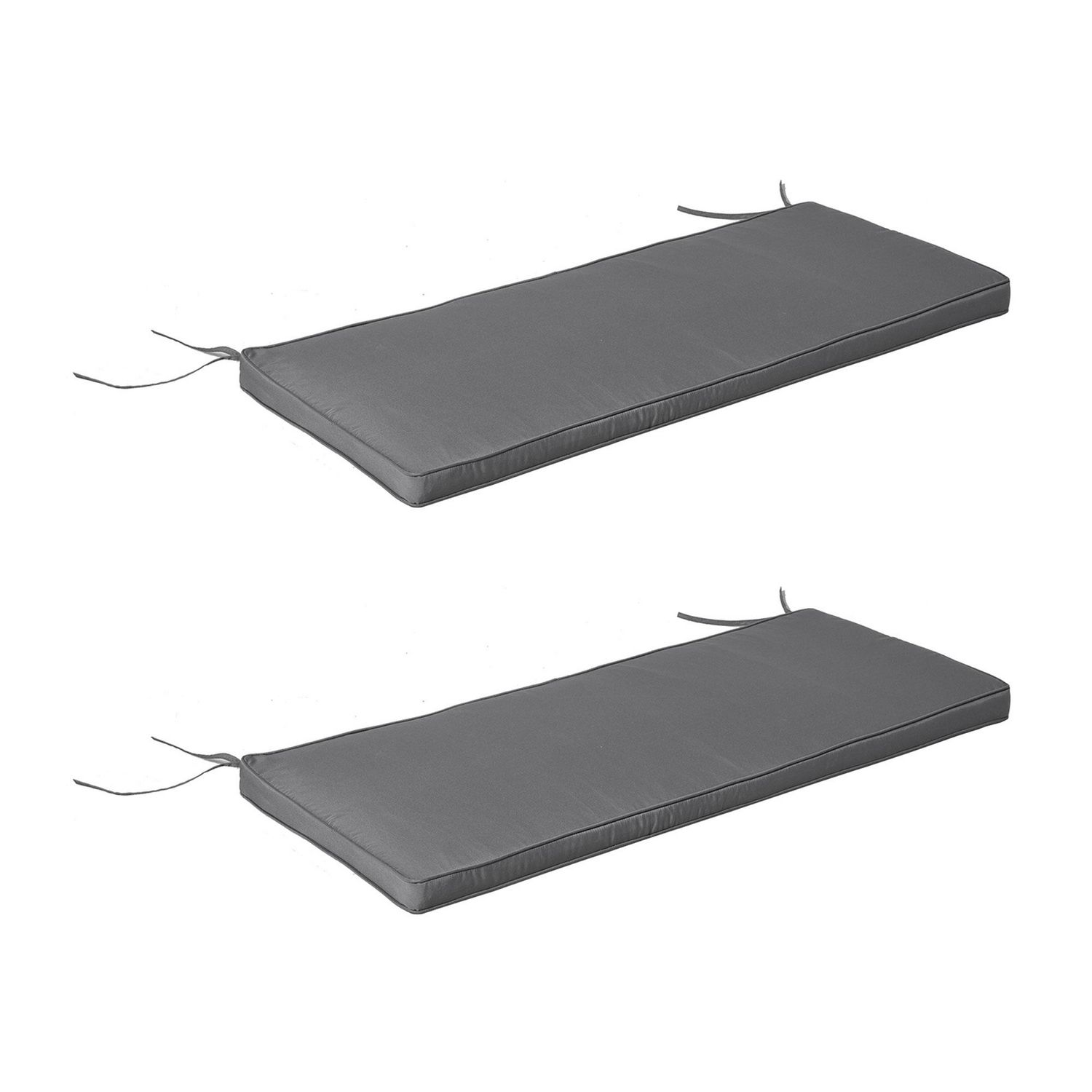Coussins de banc de jardin déhoussables - coussins balancelle - lot de 2 - dim. 120L x 50l cm - rembourrage 5 cm - cordons d'attache - polyester gris
