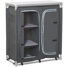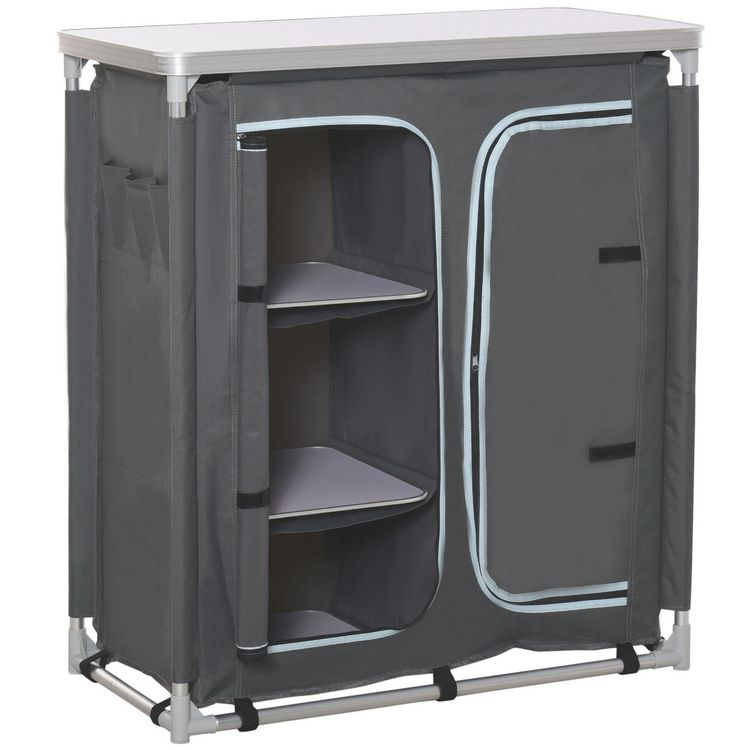 Cuisine de camping - meuble camping - armoire de camping - plan de travail, nombreux rangements, sac transport inclus - armature alu. Oxford gris