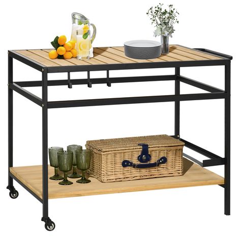 - Desserte à barbecue sur roulettes très pratique avec 2 étagères de rangement