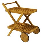 Desserte de jardin plateau étagère 3 porte-bouteilles 2 roues bois d'acacia verni