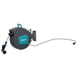 Dévidoir mural enrouleur automatique pivotant 180° tuyau 15 + 1,4 m avec lance arrosage support mural intégré turquoise gris