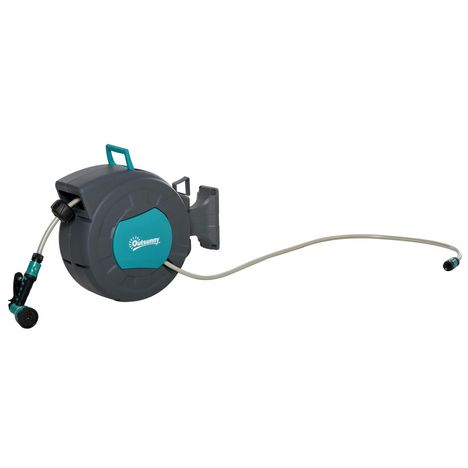Ce dévidoir mural pivotant à 180° avec système d'enroulage automatique et tuyau 15 + 1,4 m (pistolet d'arrosage inclus) vous offrira un confort optimal pour l'arrosage de votre jardin. Simplement fixé à votre mur grâce au support et visserie fournis, vous n'aurez plus à vous baisser et à vous salir les mains !
