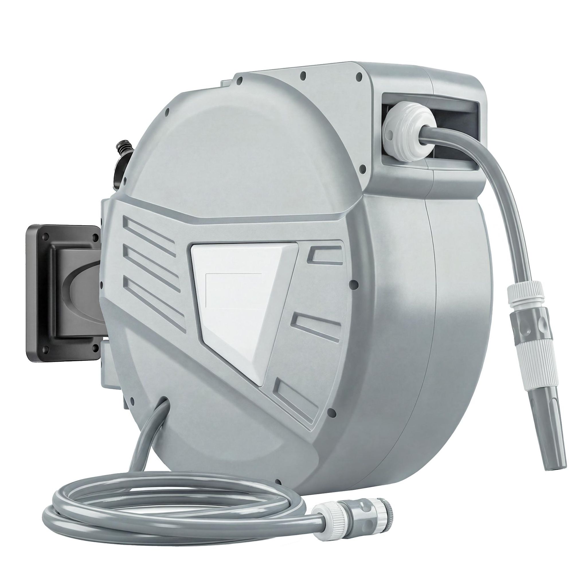 - Ce dévidoir automatique de tuyaux d'eau comprend un support mural, des accessoires de montage et des adaptateurs pour robinet pour une installation rapide