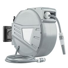 Dévidoir mural enrouleur automatique pivotant 180° tuyau 20 + 1,6 m avec lance arrosage 2 modes support mural intégré gris clair
