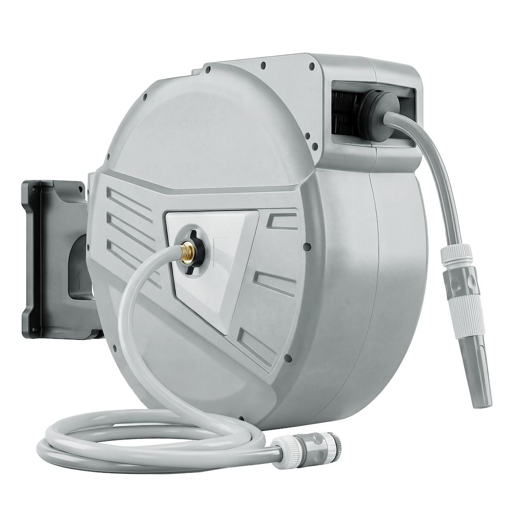 - Tuyau rétractable de 40 m avec un tuyau d'arrivée de 2 m offrant une portée étendue pour les jardins, patios et garages