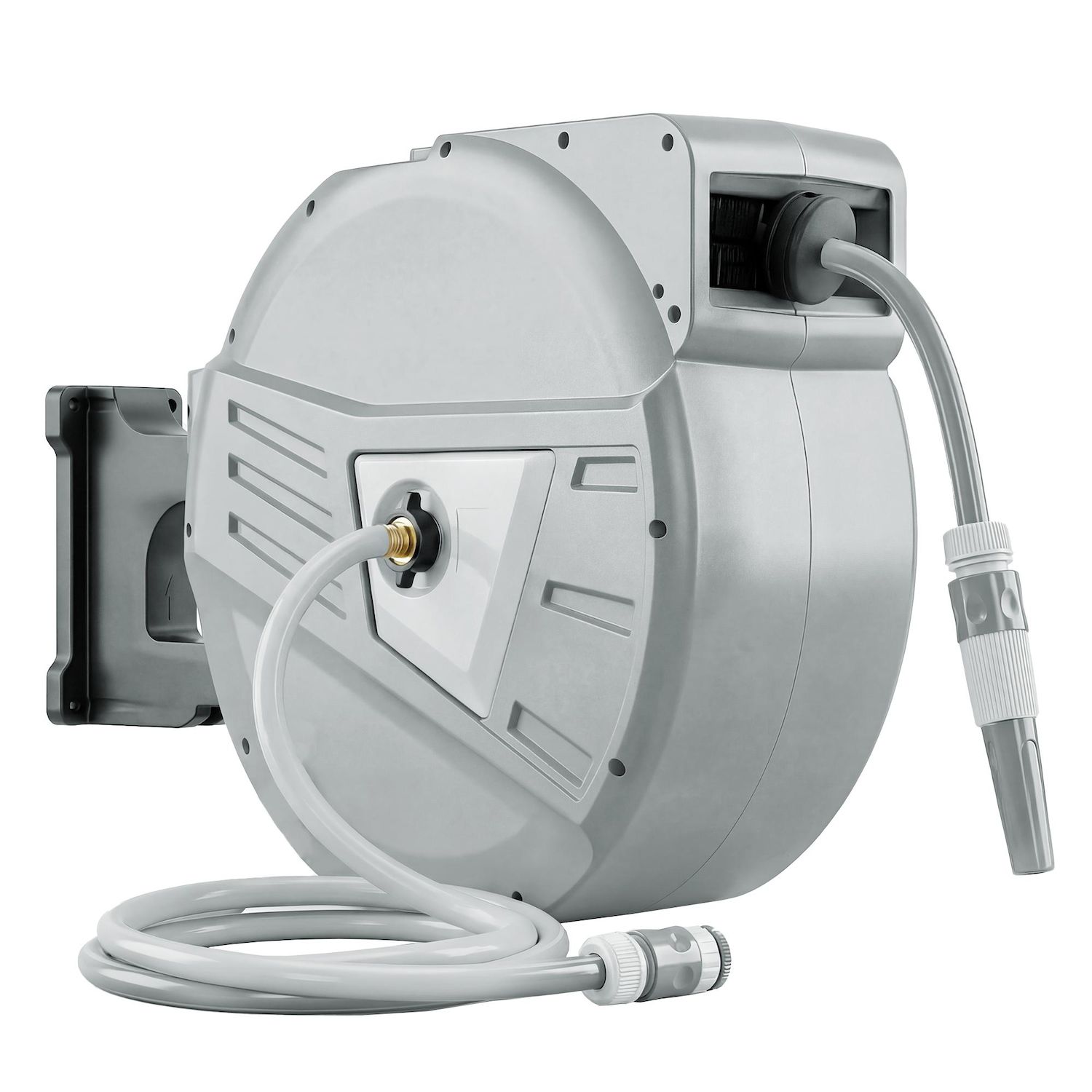 - Ce dévidoir de tuyaux d'eau comprend un support mural, des accessoires de montage et des adaptateurs pour robinet pour une installation rapide