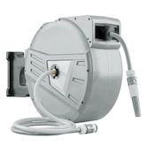 Dévidoir mural enrouleur automatique pivotant 180° tuyau 40 + 2 m avec lance arrosage 2 modes support mural intégré gris clair