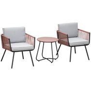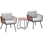 Ensemble bistro de jardin 2 places 3 pièces style contemporain coussins gris acier époxy noir résine filaire aspect rotin