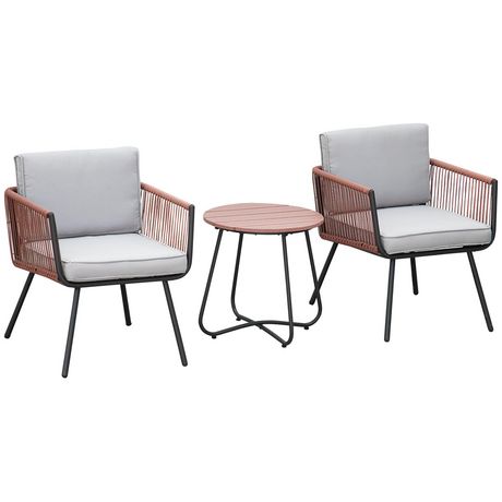 - Ensemble bistro de jardin complet doté d'un total de 3 pièces : 2 fauteuils, 1 table basse avec plateau aspect bois à lattes