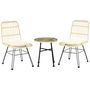Ensemble bistro de jardin 2 places 3 pièces style exotique 2 chaises + table basse ronde métal époxy noir résine tressée beige
