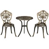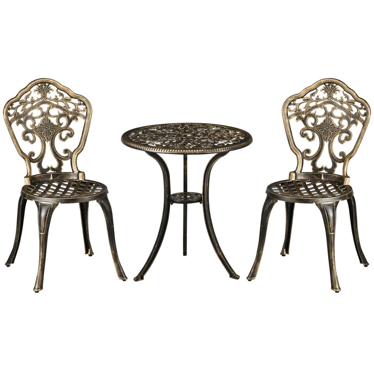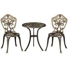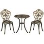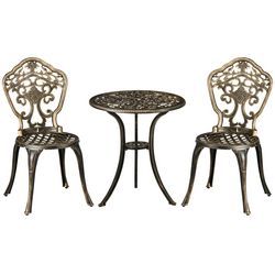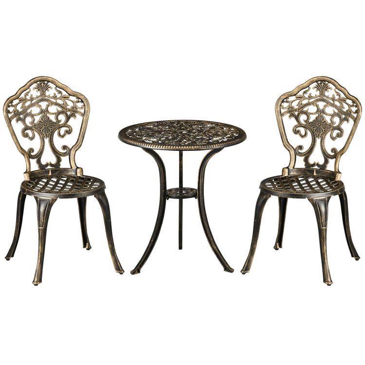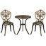 Ensemble bistrot de jardin 2 personnes 3 pièces aluminium aspect fer forgé bronze vieilli