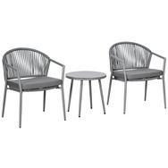 Ensemble bistrot de jardin 3 pcs 2 fauteuils table basse coussins gris