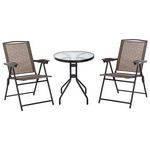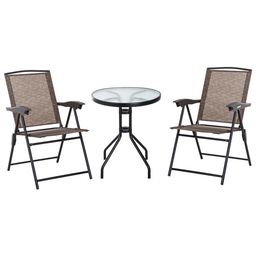 Ensemble de jardin 3 pièces 2 chaises inclinables multi-positions pliables + table ronde verre trempé métal époxy textilène chocolat