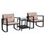 Ensemble de jardin 3 pièces style colonial 2 fauteuils à bascule avec coussins marron table basse étagère métal époxy résine tressée 4 fils noir
