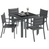 - Ensemble salon de jardin style contemporain coloris antracite avec plateau table verre trempé noir idéal pour sublimer votre extérieur