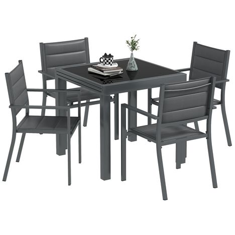 Ensemble de jardin 4 personnes chaises empilables table extensible 80/160L cm alu. teslin antracite