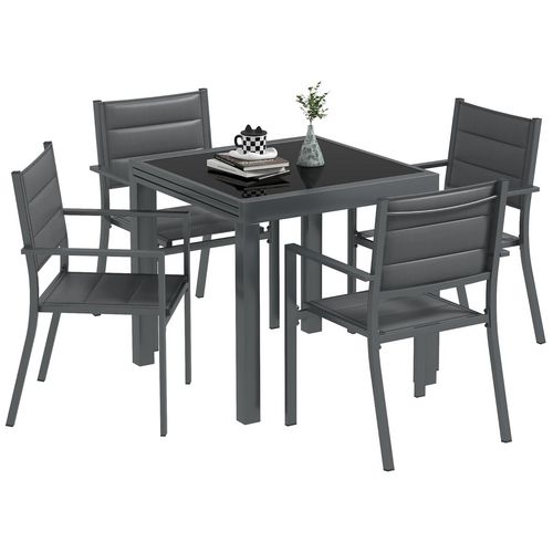 - Salon de jardin complet doté d'un total de 5 pièces : table extensible + 4 chaises