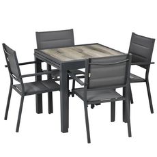 - Ensemble salon de jardin style contemporain coloris gris avec plateau table aspect bois idéal pour sublimer votre extérieur