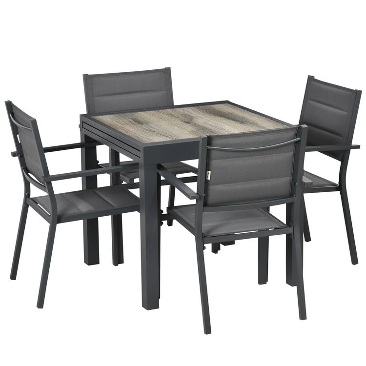 Ensemble de jardin 4 personnes chaises empilables table extensible 80/160L cm alu. teslin gris