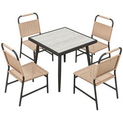 - L'ensemble de salle à manger en résine tressée 5 pièces comprend 4 chaises et une table assortie pour meubler avec élégance votre extérieur