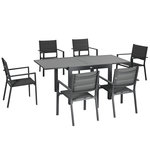 Ensemble de jardin 6 personnes chaises empilables table extensible 90/180L cm alu. textilène gris