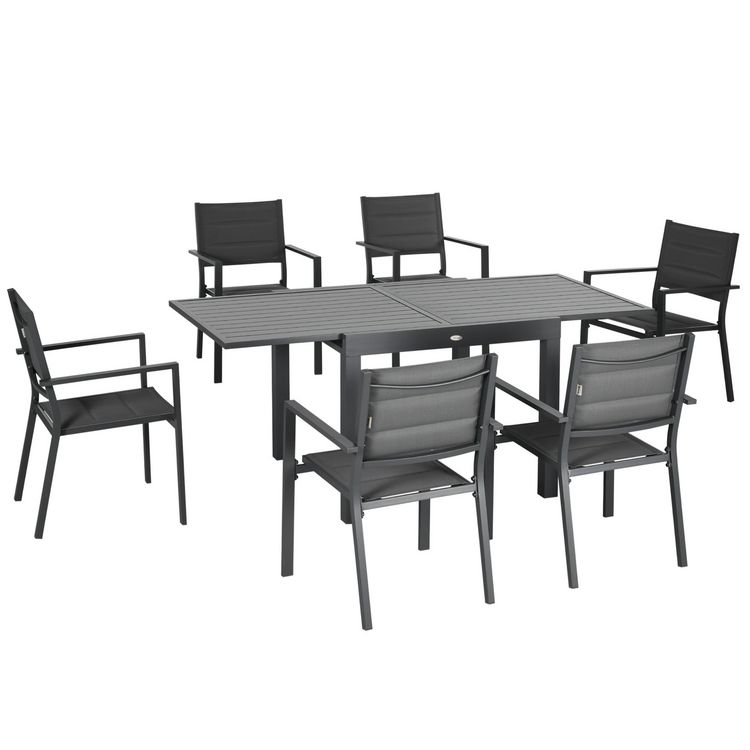 - Salon de jardin complet doté d'un total de 7 pièces : table extensible + 6 chaises