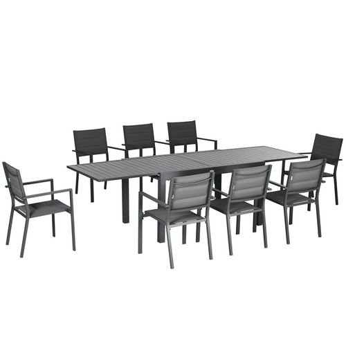- Salon de jardin complet doté d'un total de 9 pièces : table extensible + 8 chaises