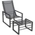 Ensemble fauteuil relax de jardin avec repose-pied métal noir tissu mesh gris