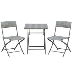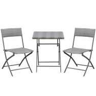 Ensemble meubles de jardin design table carré et chaises pliables résine tressée imitation rotin gris