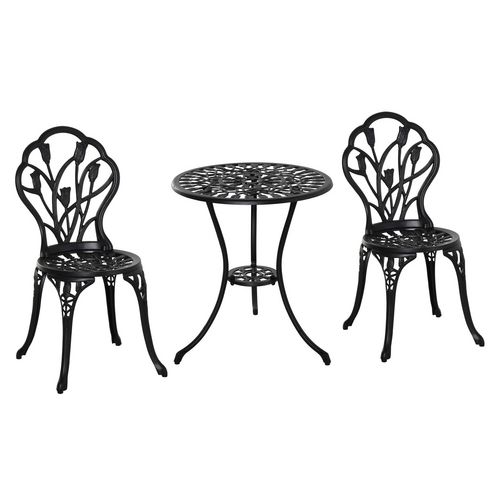Ensemble salon de jardin 2 places 2 chaises + table ronde fonte d'aluminium imitation fer forgé noir