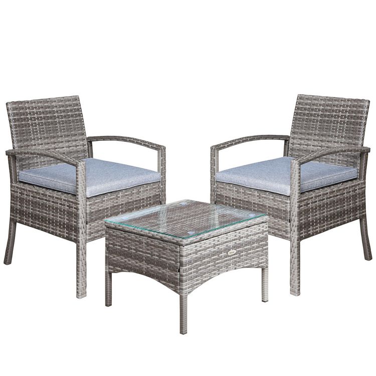 Ensemble salon de jardin 2 places 3 pièces résine tressée imitation rotin avec coussins gris