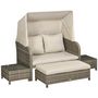Cet ensemble de canapé de conversation de patio 4 pièces Outsunny est composé d'une structure en métal galvanisé solide solide avec résine tressée imitation rotin PE résistant aux intempéries et un coussin de siège rembourré doux qui offre une expérience d'assise très confortable. Décoratifs et fonc